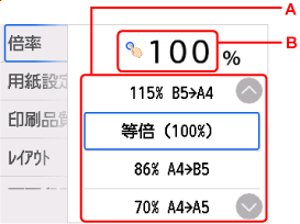 [倍率]の設定:[47% A4→はがき]/[70% A4→A5]/[86% A4→B5]/[115% B5→A4]/[141% A5→A4]/[200% はがき→A4]