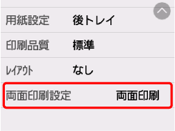 コピー待機画面で[印刷設定]を選んで印刷設定画面を表示し、[両面印刷設定]で[両面印刷]を選んで、[OK]を選びます。