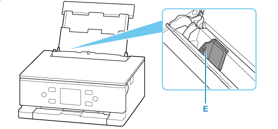 封筒は最大用紙量のマーク(E)の線を超えないようにセットしてください。