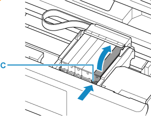 インクタンクの固定つまみ(C)を押し、インクタンクを上に持ち上げて外します。
