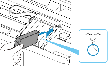 新しいインクタンクをプリントヘッドに向かって斜めに差し込む