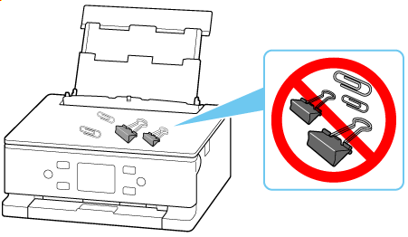 原稿台カバー上には物を置かないでください。原稿台カバーを開けたときに後トレイに物が落ち、故障の原因になります。また、上から物が落ちる場所などには、プリンターを置かないでください。