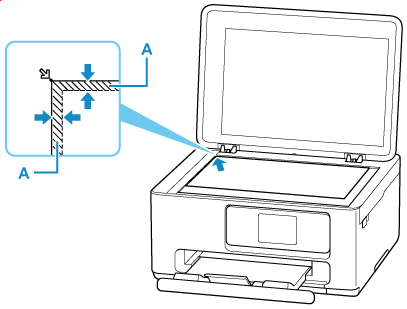 The printer cannot scan the striped area (A) (0.04 in. (1 mm) from the edges of the platen glass).
