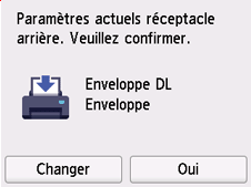 Si le format de papier et le type de support indiqués sur l'écran tactile correspondent au format et au type des enveloppes chargées dans le réceptacle arrière, sélectionnez Oui.