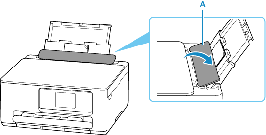 Trek de papiersteun (B) recht omhoog en vouw deze naar achteren.