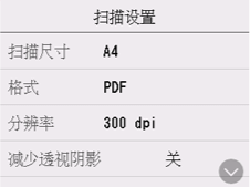 扫描薄文档(如报纸)时可能会出现扫描件映出纸张背面的字符的现象。 如果扫描的文档上似乎出现字符映出现象,则选择开。
