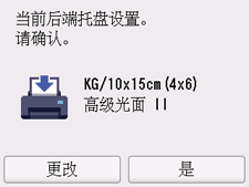 关闭进纸插槽盖板后,触摸屏上会显示后端托盘的纸张设置确认屏幕。