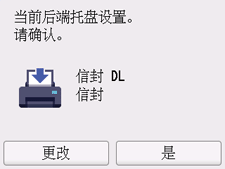 如果触摸屏上显示的页尺寸和介质类型与后端托盘中装入的信封尺寸和类型相匹配,请选择是。