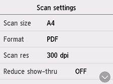 Kui avatakse skannimise ooterežiimi kuva, valige määrangu valimiseks suvand Määrangud (Settings). Nipsake määranguüksuste kuvamiseks ja valige määrangute kuvamiseks määranguüksus. Valige määrangu täpsustamiseks.