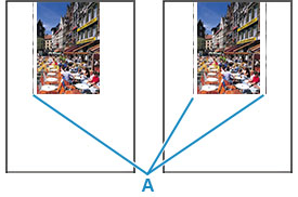 Ha a betöltött papír nagyobb, mint az Ön által megadott méret, akkor függőleges vonalak (A) jelenhetnek meg a bal oldali vagy mindkét margón.