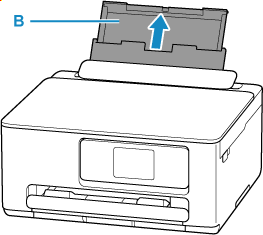 3. Tirare verso l'alto e ripiegare il supporto per la carta (B).