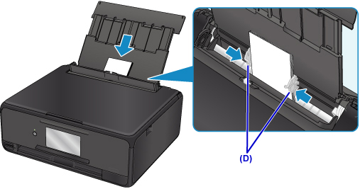 4. Zarovnejte vodítka papíru (D) podle šířky papíru.