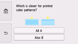(Ejemplo: el patrón magenta no se imprime)Es necesario limpiar. Seleccione También B (Also B) y, a continuación, seleccione Sí (Yes) en la pantalla de confirmación de limpieza.