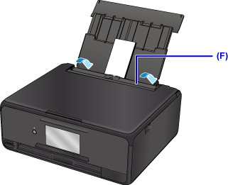 Buka penutup tatakan belakang (A), kemudian tarik naik pendukung kertas (B).