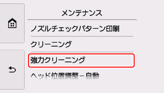 プリントヘッドのクリーニングを行っても効果がない場合は、強力クリーニングを行ってください。強力クリーニングは、通常のクリーニングよりインクを消耗しますので、必要な場合のみ行ってください。