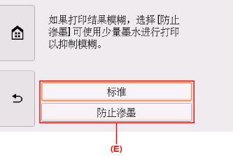 如果打印结果模糊,请选择防止渗墨。 可使用更少的墨水进行打印以改善模糊情况。