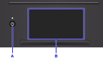 Juhtpaneel koosneb nupust Sisse (ON) (A) ja puuteekraanist (B).