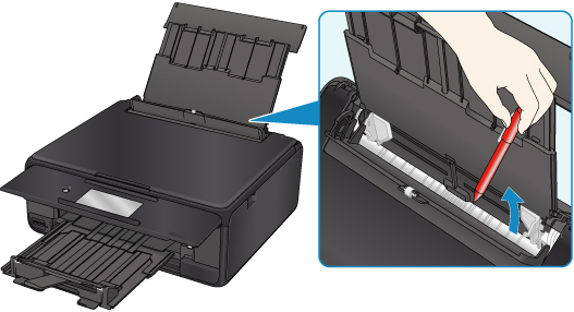 Ako u stražnjoj ladici ima stranih predmeta, obavezno isključite pisač, isključite ga iz struje i uklonite strani predmet.