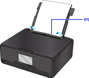 Bīdiet papīra vadotnes, lai tās atvērtu, un novietojiet papīru aizmugures paliktņa centrā AR APDRUKĀJAMO PUSI UZ AUGŠU.