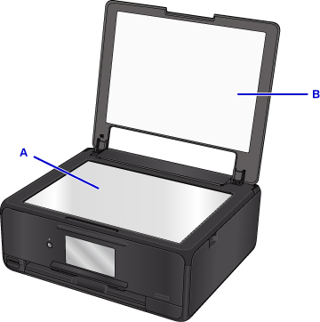 - Wewnętrzną stronę pokrywy dokumentów (biała powierzchnia) (B) można łatwo uszkodzić, więc należy przecierać ją bardzo delikatnie.