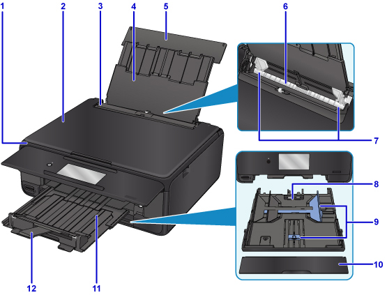 - 印表機開始列印時自動伸出。 輸出已列印的紙張。