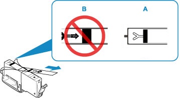 إذا كان الشريط اللاصق البرتقالي لا يزال موجودًا على خزان الحبر (B)، فقم بإزالته.