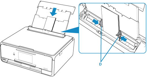 Povucite vodilice papira (D) kako bi se otvorile i umetnite omotnice u sredinu stražnje ladice TAKO DA JE STRANA ZA ADRESU OKRENUTA PREMA GORE.