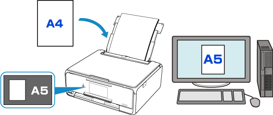 - Ad esempio, quando l'impostazione carta per la stampa o la copia è A5 e le informazioni della carta registrate nella stampante sono impostate su A4, la stampante avvia la stampa o la copia con formato A5 sulla carta caricata nel cassetto.
