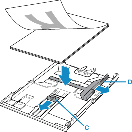 Verschuif de papiergeleider (C) aan de voorzijde en (D) aan de rechterzijde om de papiergeleiders te openen.