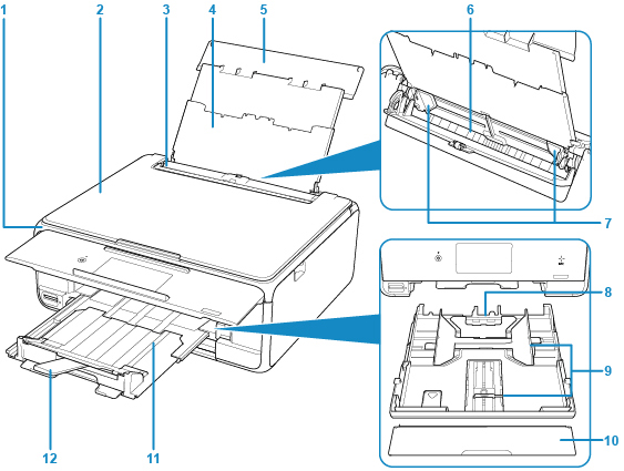 Abra-a para deslizar as guias do papel e feche-a antes de imprimir.