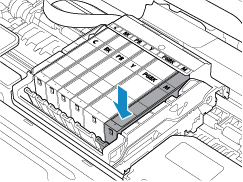 Нажимайте на верхнюю часть чернильного контейнера, пока чернильный контейнер не зафиксируется на месте.