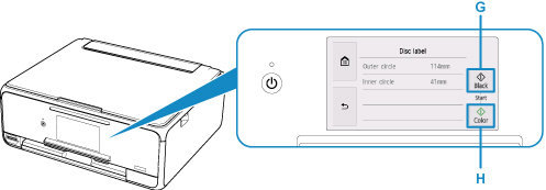 確認列印設定,然後觸摸黑白(Black)按鈕(G)或彩色(Color)按鈕(H)。