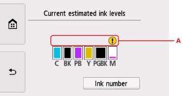 如果存在任何關於剩餘墨水量的資訊,則區域(A)中會顯示一個符號。
