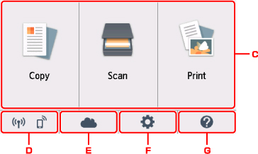 Hiển thị màn hình chính của đám mây. Bạn có thể sử dụng các dịch vụ của PIXMA/MAXIFY Cloud Link.