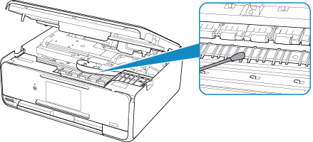 Ha a probléma kétszeri tisztítás után is fennáll, előfordulhat, hogy a nyomtató belsejében található kiálló részek lettek szennyezettek. Vattás tisztítópálcikával vagy hasonló eszközzel törölje le a tintát a kiálló részekről.