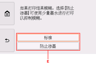 如果打印结果模糊,请选择防止渗墨。 可使用更少的墨水进行打印以改善模糊情况。