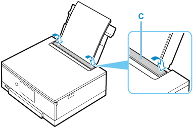 Skub højre papirstyr (D) for at justere med begge sider af papirstakken.