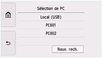 Dans le cas d'un ordinateur connecté à l'aide d'un câble USB, sélectionnez Local (USB) ; pour un ordinateur connecté au réseau, sélectionnez l'ordinateur vers lequel transférer les données numérisées.