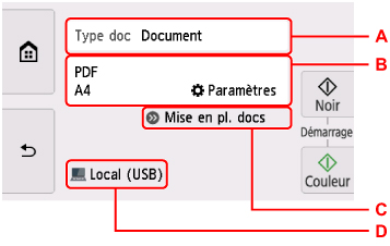 • Lorsque vous sélectionnez PDF ou PDF compact pour Format, dans l'écran des paramètres de numérisation :