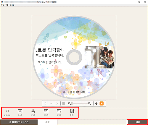 Easy-PhotoPrint Editor 어플리케이션을 통해 사진 및 텍스트를 BD/DVD/CD에 인쇄하여 개인 설정 디스크를 쉽게 만들 수 있습니다.