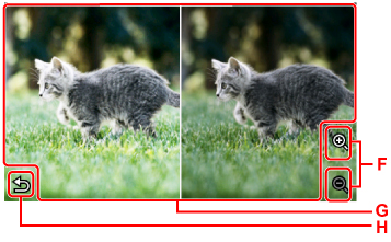 G: Flytta visningspositionen genom att dra. Du kan flytta källbildens och jämförelsebildens visningsposition.