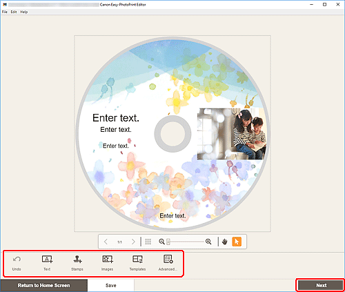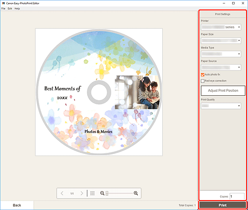 Sử dụng ứng dụng Easy-PhotoPrint Editor để tạo đĩa cá nhân dễ dàng bằng cách in ảnh và văn bản lên BD/DVD/CD.