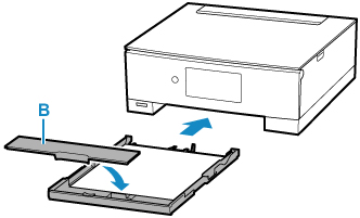 Tegye fel a kazetta fedelét (B), majd tegye be a kazettát a nyomtatóba.
