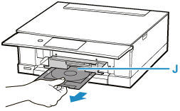 按下固定导片(K),同时从多用途托盘上的卡槽(L)取出可打印光盘,将其取下。