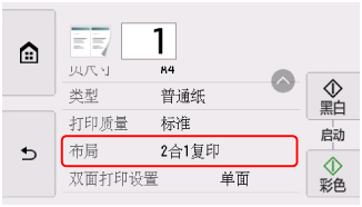 也可以通过选择复印待机屏幕上的布局直接选择2合1复印。