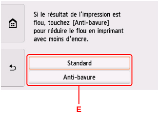 Si le résultat de l'impression est floue, sélectionnez Anti-bavure. Le bavures peuvent être réduites en imprimant avec moins d'encre.