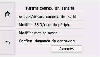 Modifiez les paramètres de connexion directe sans fil en suivant la procédure ci-dessous.