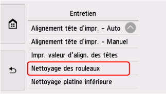 Dans ce cas, nettoyez le rouleau d'entraînement du papier. Dans la mesure où ce nettoyage use le rouleau d'entraînement du papier, n'effectuez cette opération qu'en cas de nécessité.