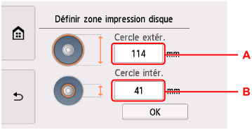Réglez la zone d'impression (diamètre interne ou externe du disque imprimable).