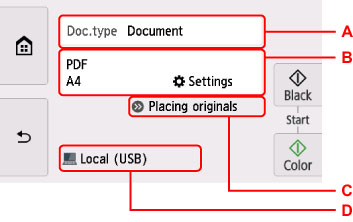 USB-kapcsolaton keresztül csatlakoztatott számítógép esetén válassza a Helyi (USB) (Local (USB)) beállítást, helyi hálózaton keresztül csatlakozó számítógép esetén pedig válassza ki azt a számítógépet, amelyre továbbítani szeretné a beolvasott adatokat.